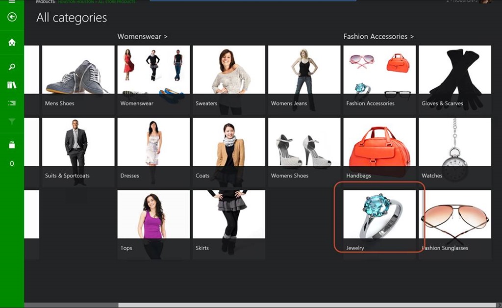 · For example, in MPOS, when browsing products by category you will notice that the category for Jewlery is a blue ring – see below.