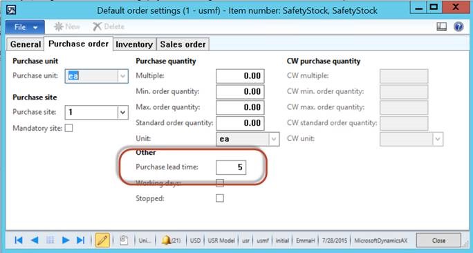 3. Purchase Lead time plays an important factor in the calculation of safety stock, so in this example, I have set the lead time to 5 days