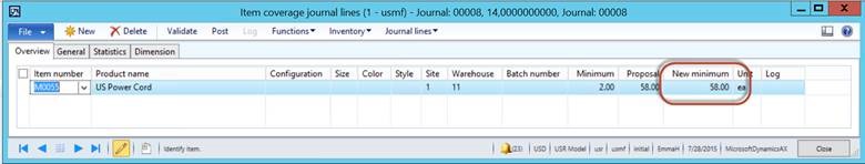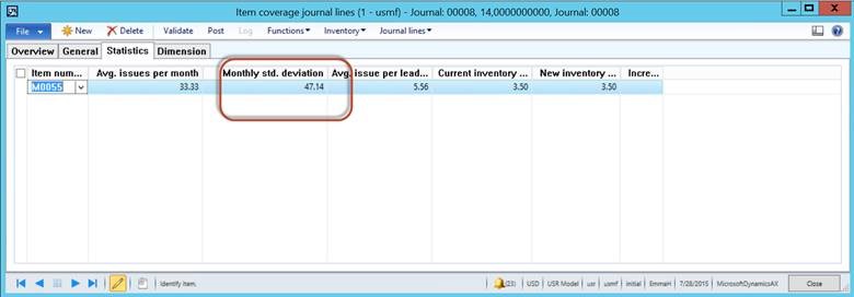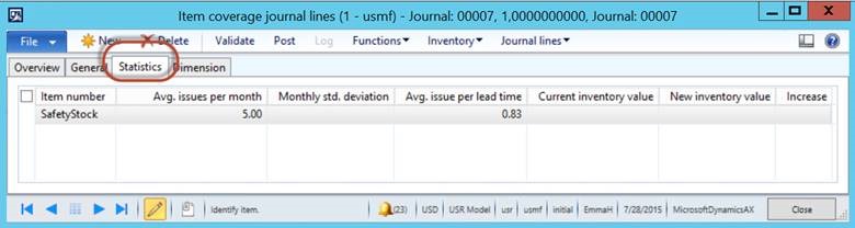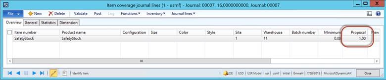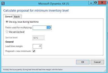 Microsoft Dynamics AX 2012 R3 provides the capability of managing such process through the “Safety Stock Journal”. The calculation is made up of two distinct formulas which can be setup to run and update your minimum inventory level.