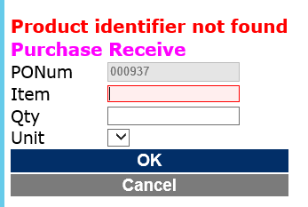 This will get used when the user enters data that the system didn’t accept. In this example a purchase receipt